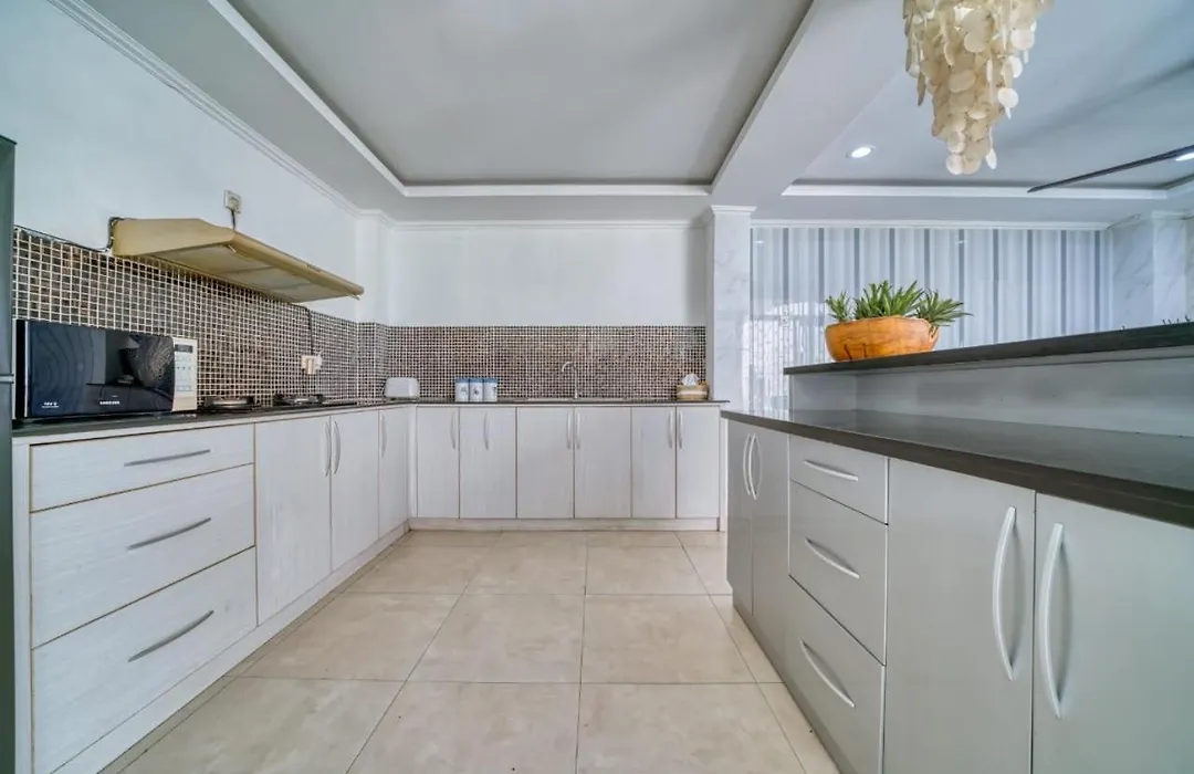 Experience ultimate comfort in Rumah Bella Private Villa 3 Bedroom 3 Bathroom's kitchen, supplied with kitchenware. Also, guests can use a dining area for self-catering. Offering Asian specialties, restaurant Nasi Campur Bali Sukreni is just 1.3 km away. Ngurah Rai International airport is located 5 km from the Jimbaran property. Rumah Bella Private Villa 3 Bedroom 3 Bathroom has a terrace to relax on after a busy day, along with a swimming pool.
